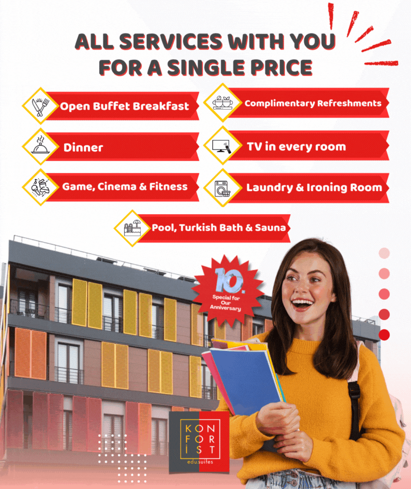 Konforist offers students a home-like atmosphere with the comfort of a hotel. Designed to help them experience education and social life at the highest level, it is a motivation- and success-oriented accommodation and social living center.